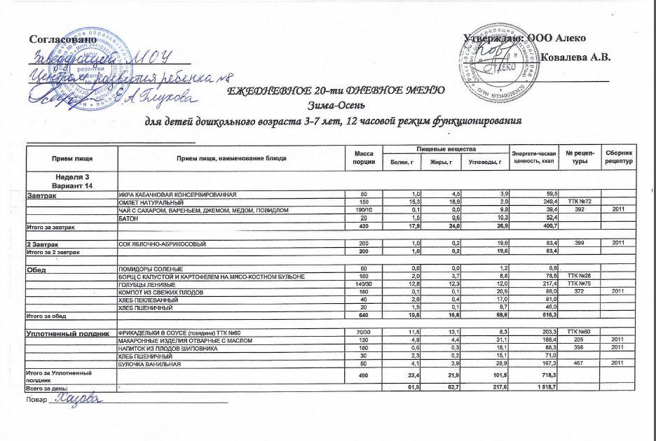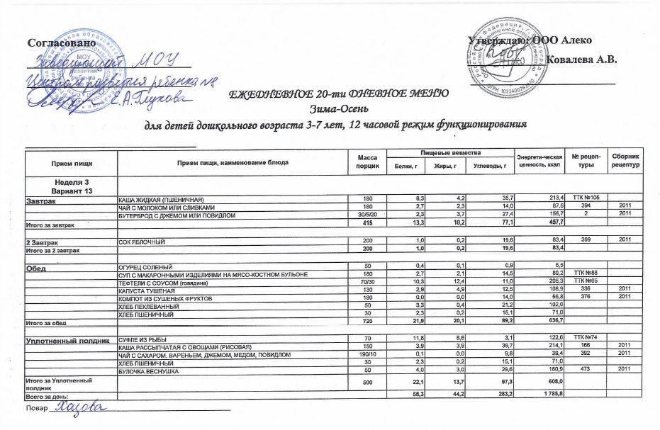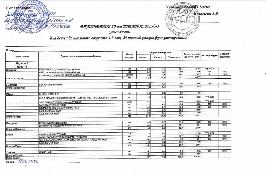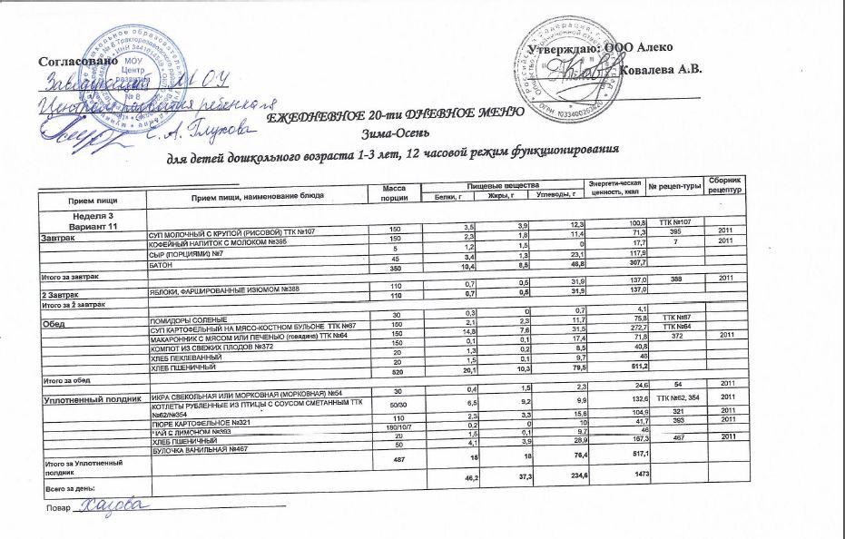 МЕНЮ НА 28.01.2026 В МОУ ЦЕНТРЕ РАЗВИТИЯ РЕБЕНКА № 8 ДЛЯ ДЕТЕЙ 3-7 ЛЕТ (круглосуточного пребывания)