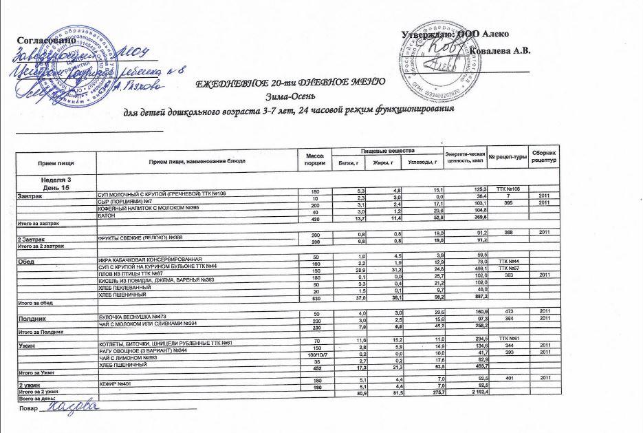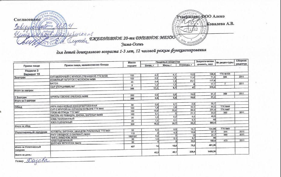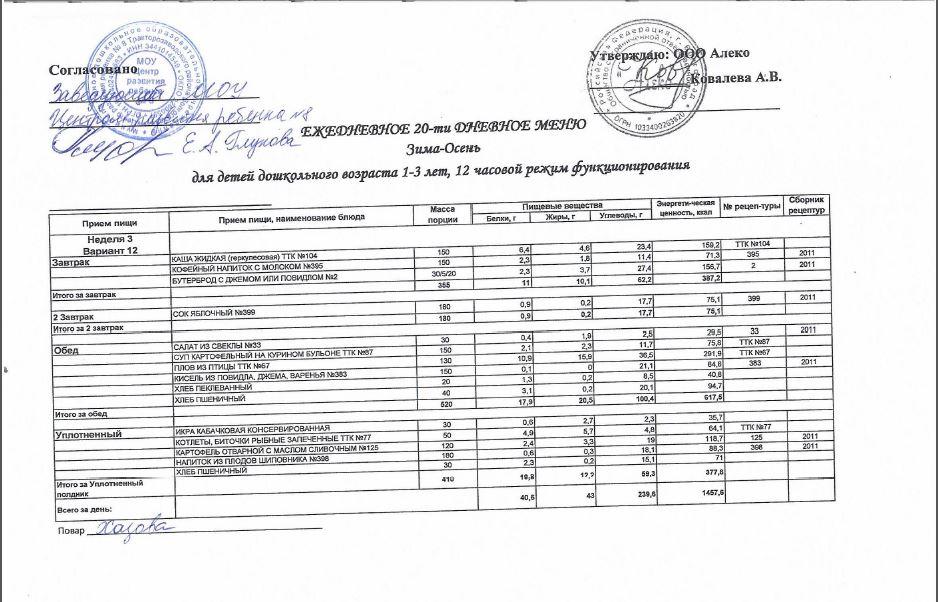 МЕНЮ НА 26.01.2026 В МОУ ЦЕНТРЕ РАЗВИТИЯ РЕБЕНКА № 8 ДЛЯ ДЕТЕЙ 3-7 ЛЕТ (круглосуточного пребывания)
